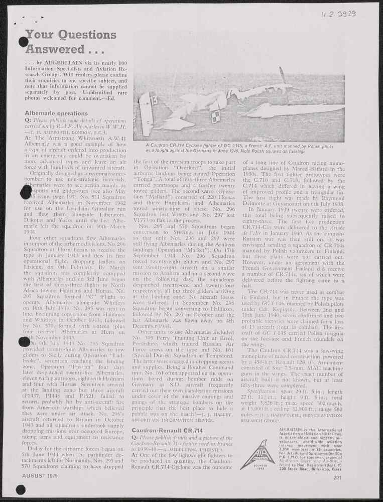 Kopie uit Air-Britain, mei 1975.