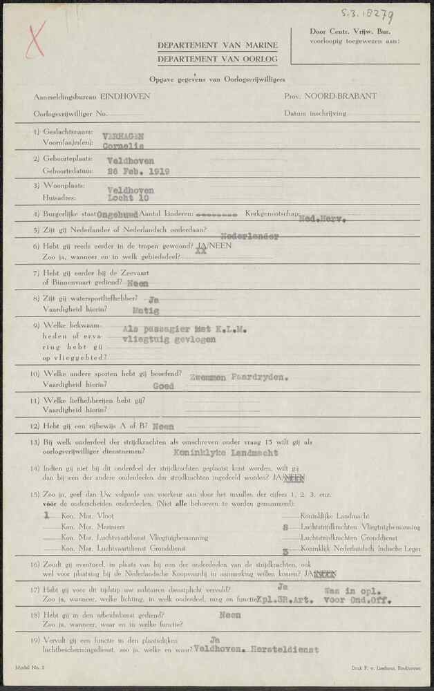 Aanmeldingsformulier oorlogsvrijwilliger Aanmeldings...