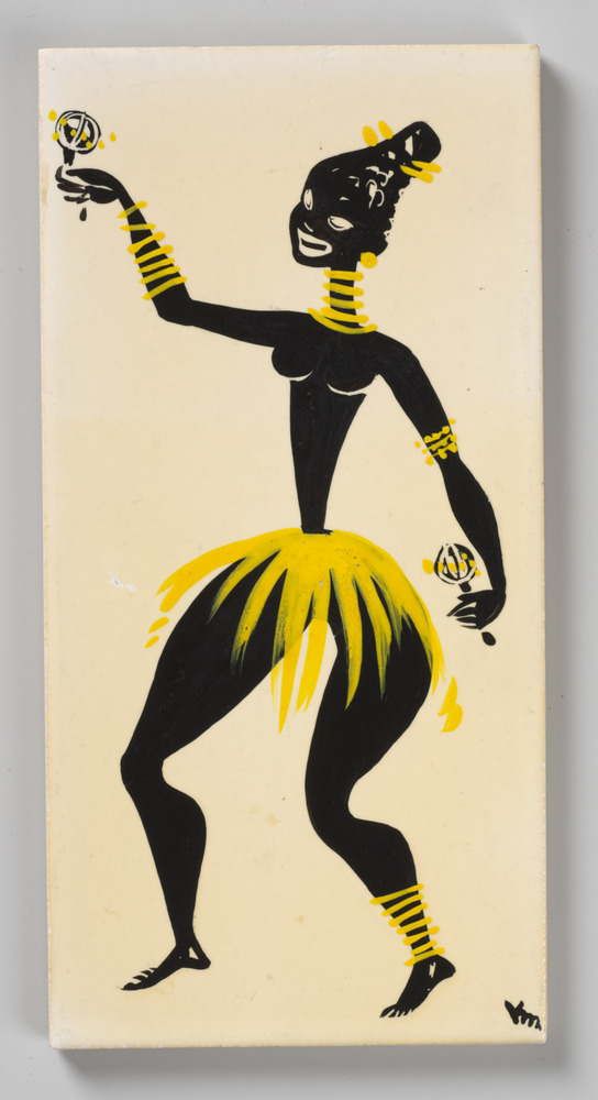 tegel van aardewerk in koudlak, voorstellende: danse...