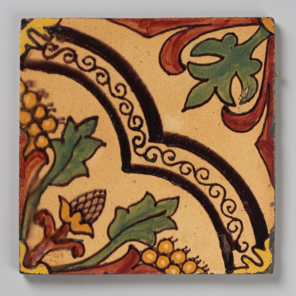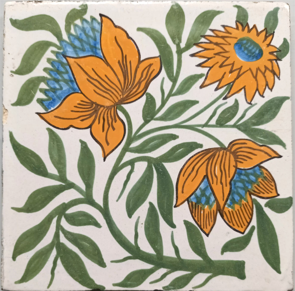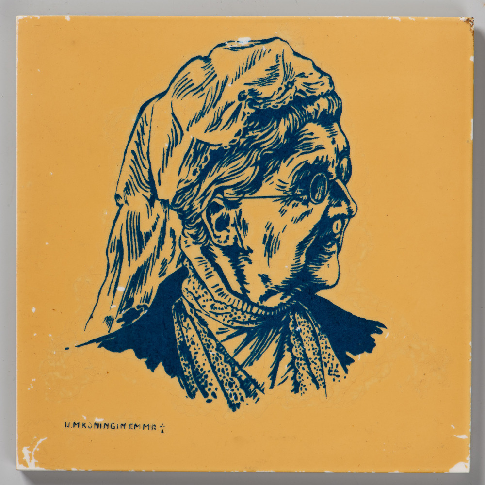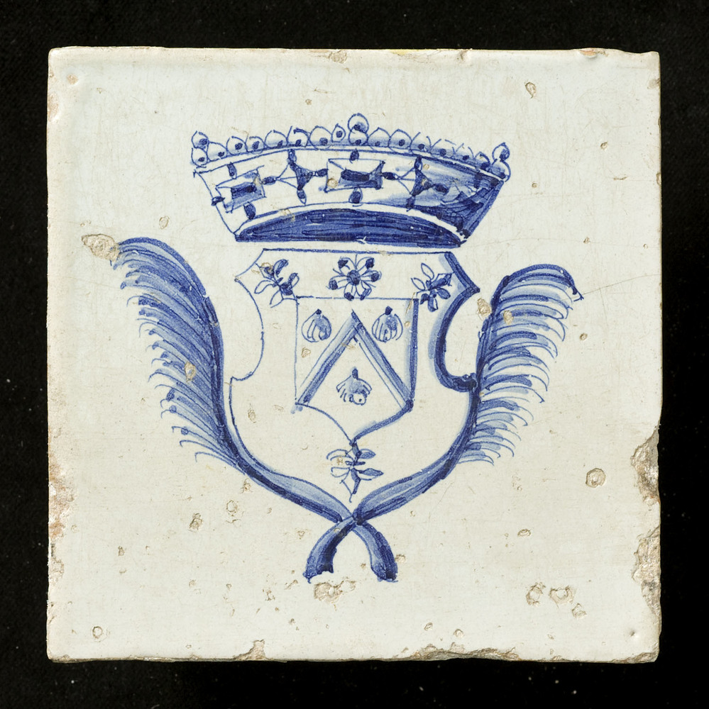 tegel van keramiek met tinglazuur, voorstellende: or...