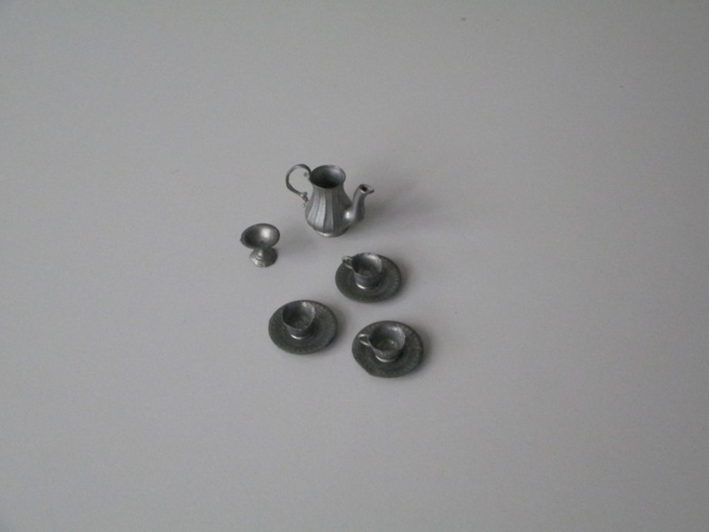 Servies met drie kop en schotels, koffiekan en bonbo...
