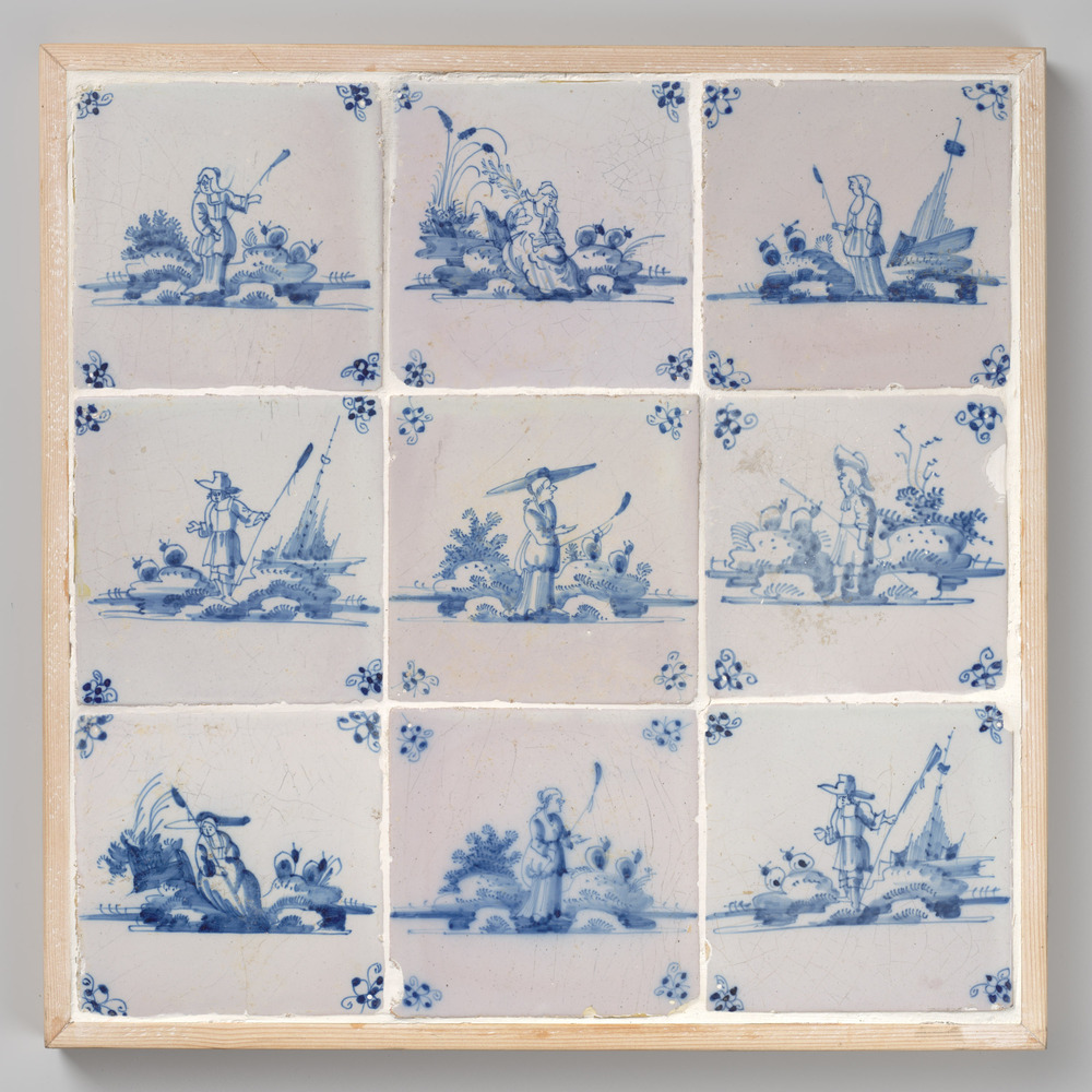 tegelveld, bestaande uit negen tegels van aardewerk ...