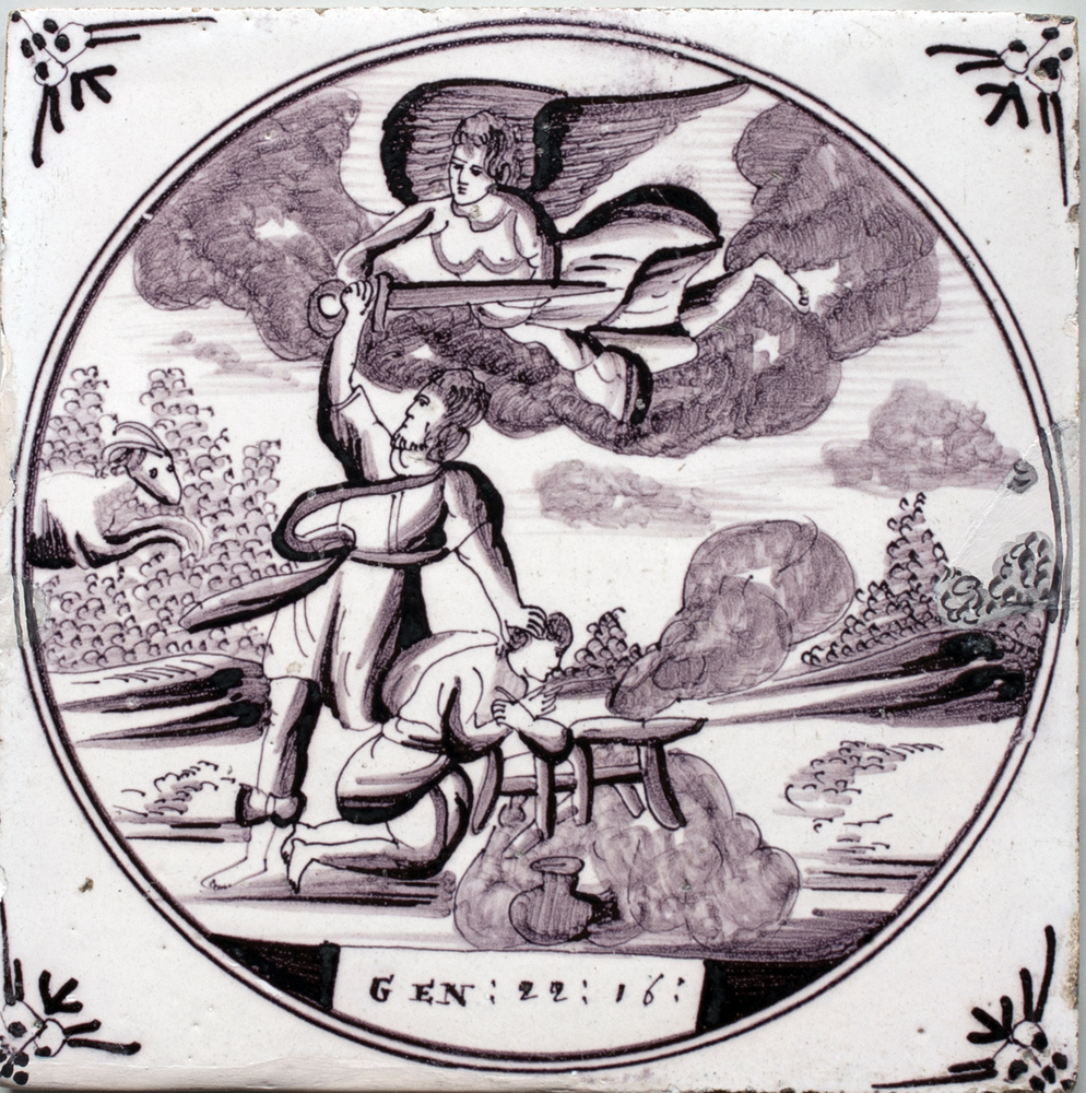 tegel van keramiek met tinglazuur, voorstellende: Ab...