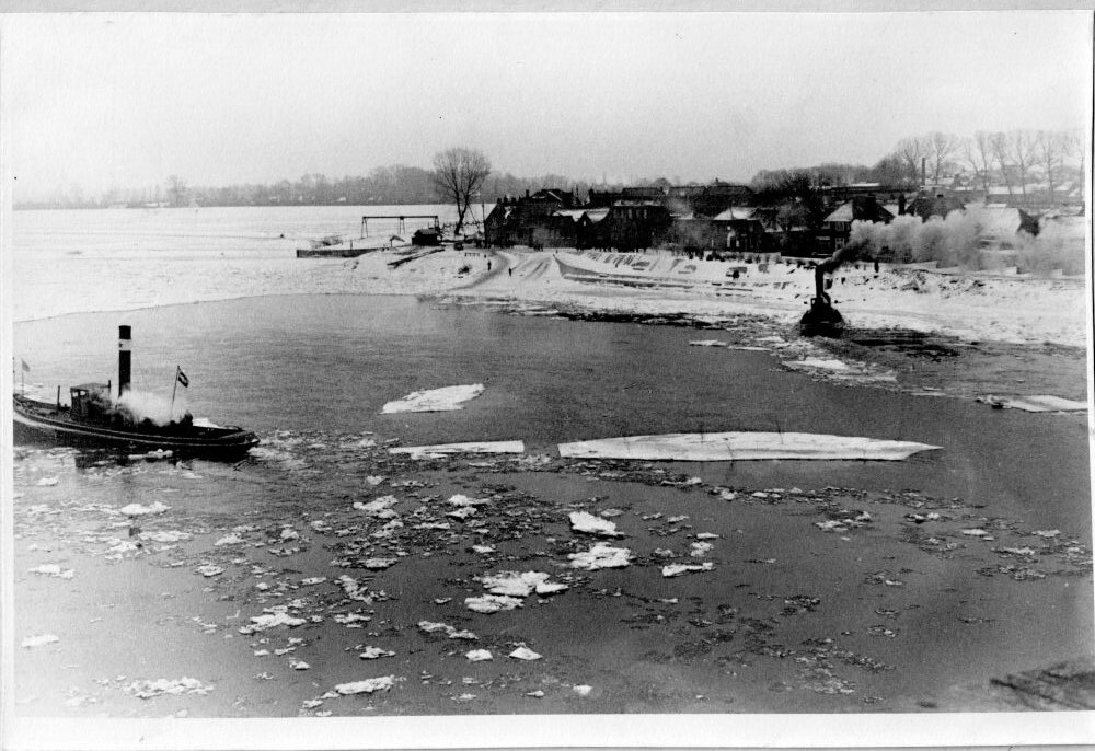 Foto, voorstellende de Lek met ijsgang, Veerkade te ...