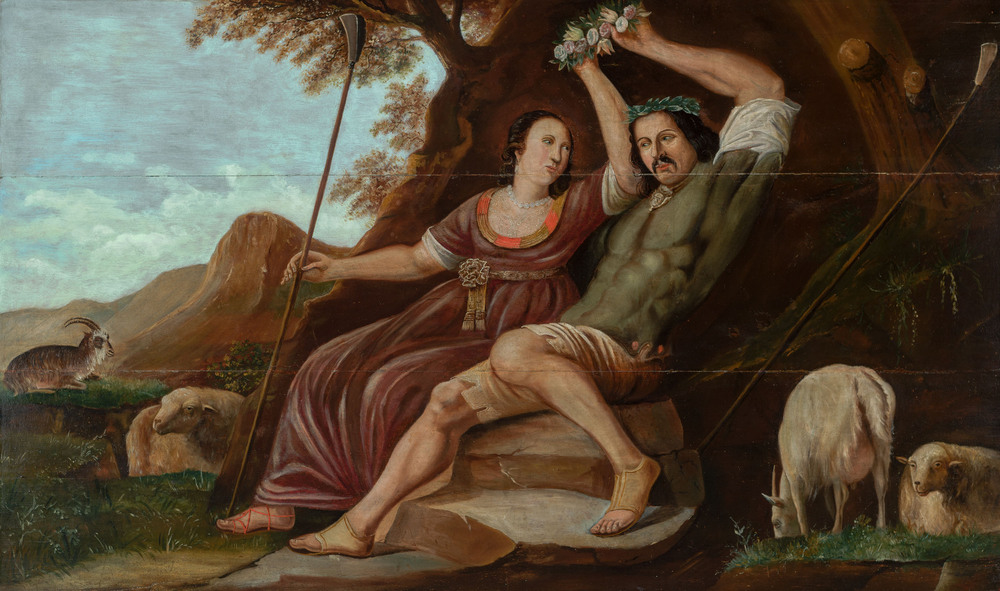 Schilderij, olieverf op paneel, voorstellende een pa...
