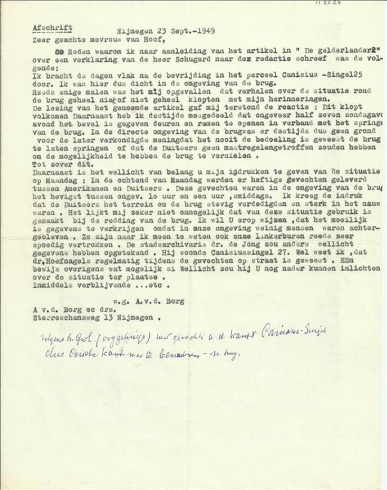 Afschrift, brief A.v.d.Borg, 23 september 1949