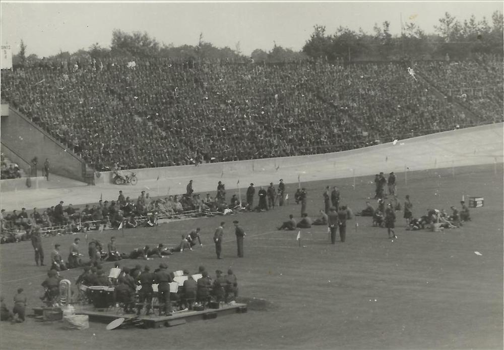 sportdag Canadese militairen in Goffert stadion, 1945