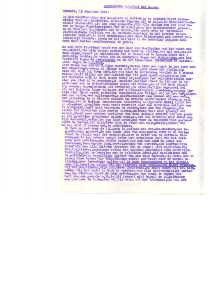 conferentie van de staf der N.S.B., 15 augustus 1941
