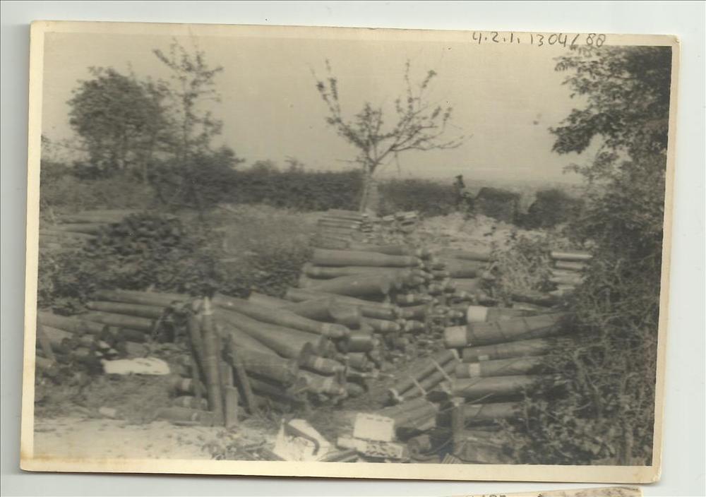 stapels granaten, Molenweg, Groesbeek, mei 1945