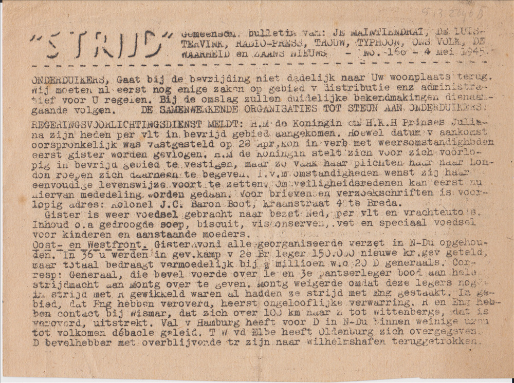 "Strijd" No. 166 (!), 4 Mei 1945
