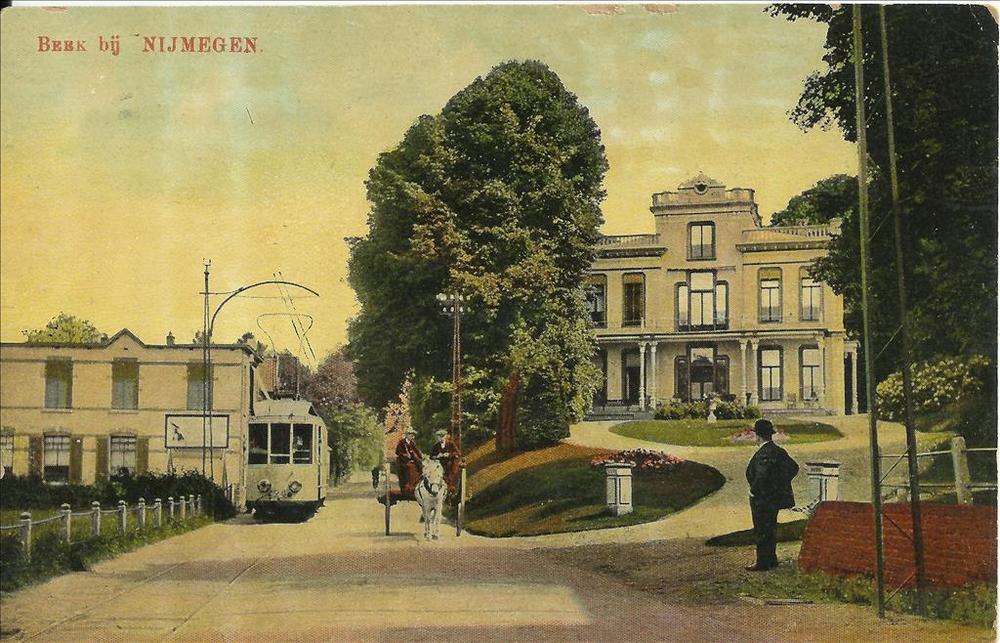 Ansichtkaart met tram te Beek bij Nijmegen