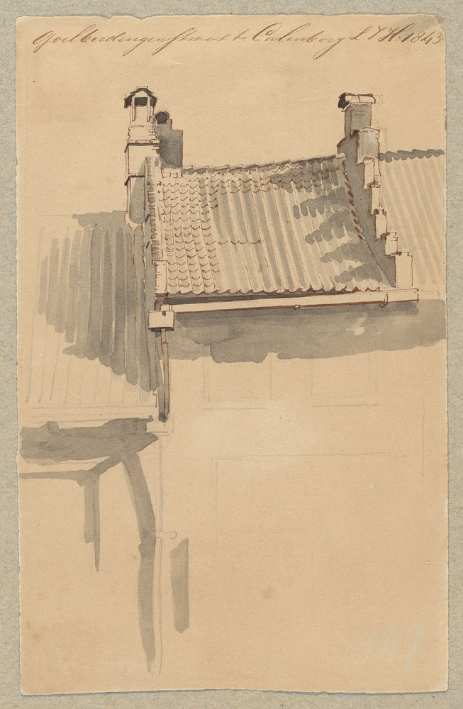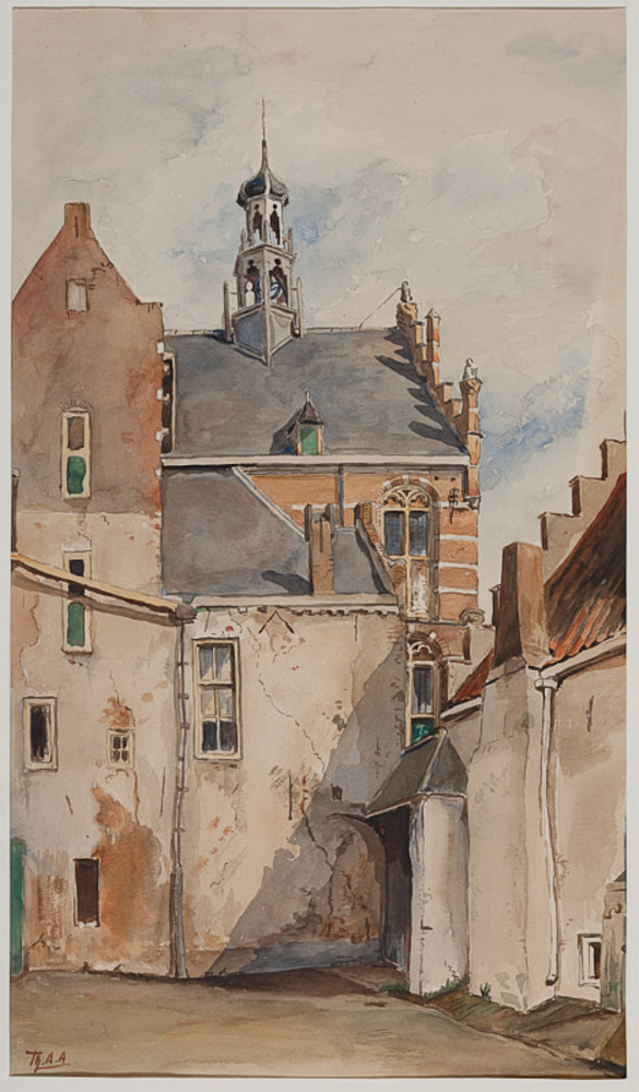 Aquarel, voorstellende dakpartij in de Goilberdinger...