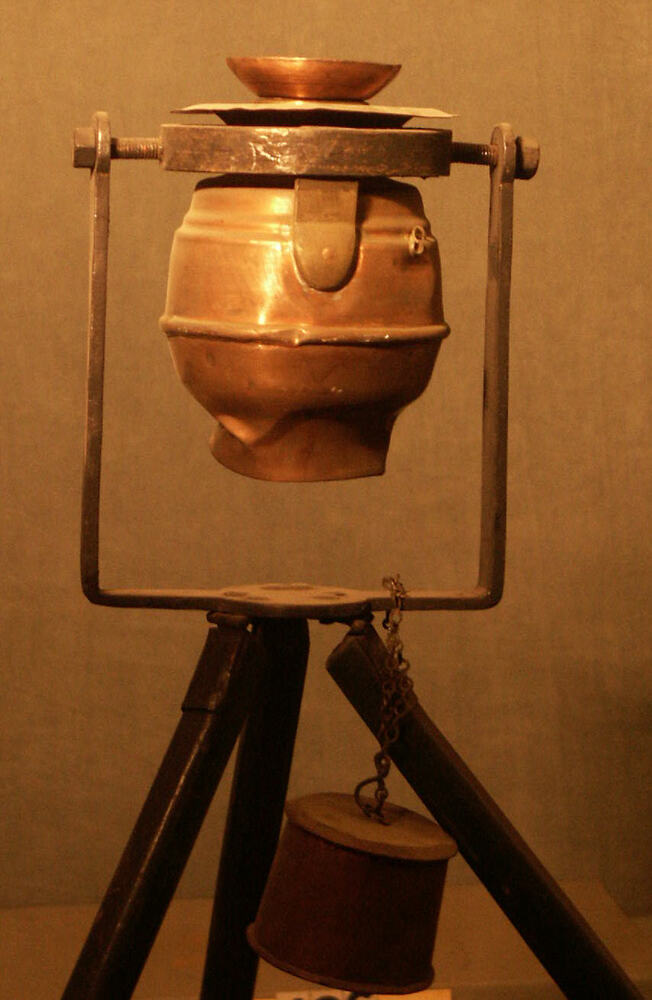 Fakkel van koper met smeedijzeren standaard, geassoc...