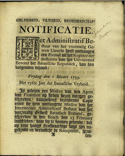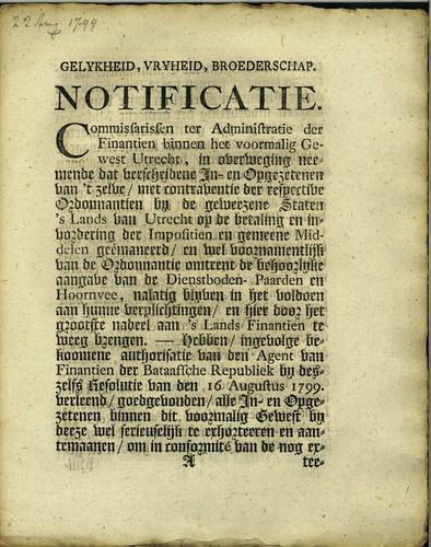Plakkaat, dienstboden, paarden, hoornvee, 1799
