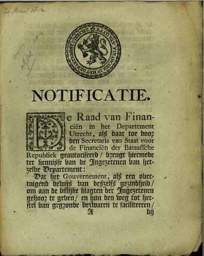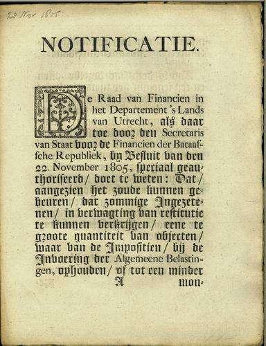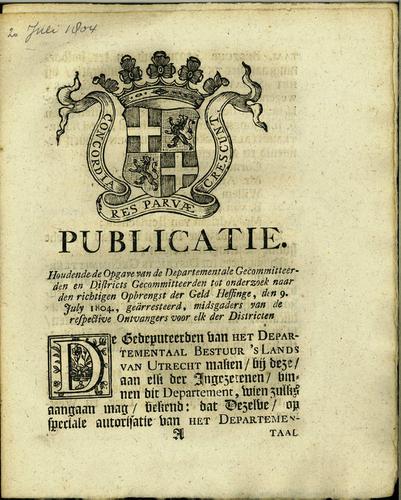 Plakkaat, onderzoek opbrengst geldheffing, 1804