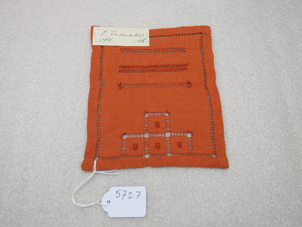 proeflap van oranje stof met oranje borduurzijde, E....