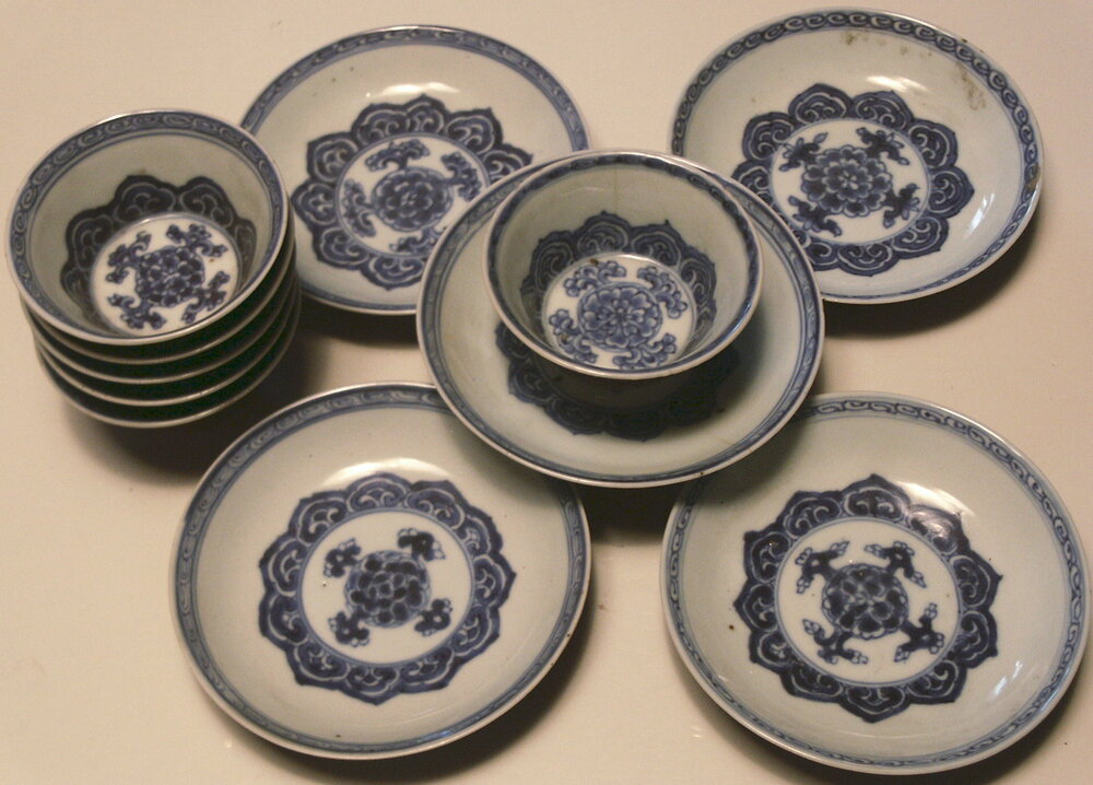 6 capucijner kopjes en schoteltjes.