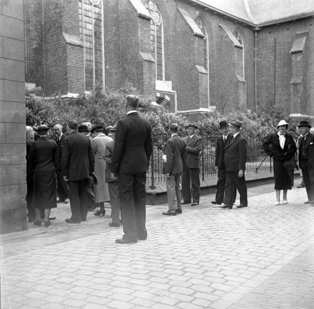 Foto, voorstellende leden van de oudheidkamer bij de...