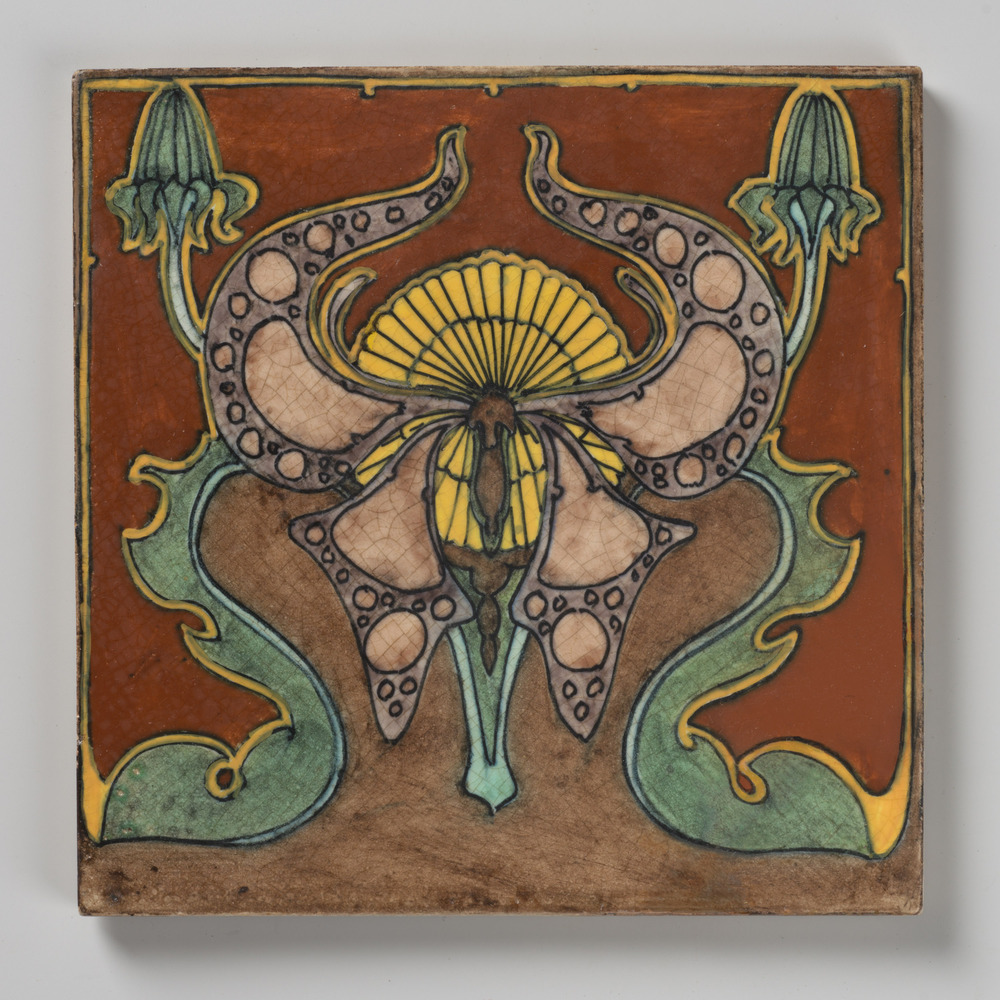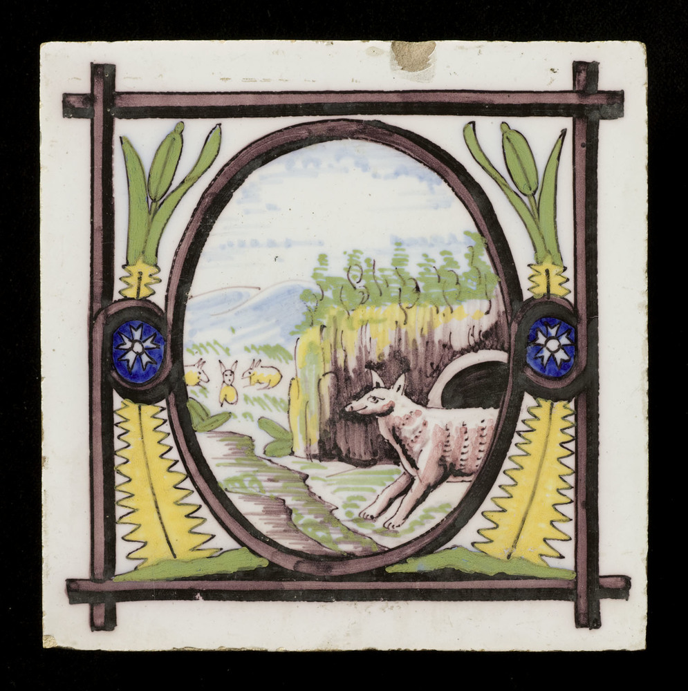 tegel van keramiek met tinglazuur, voorstellende: or...