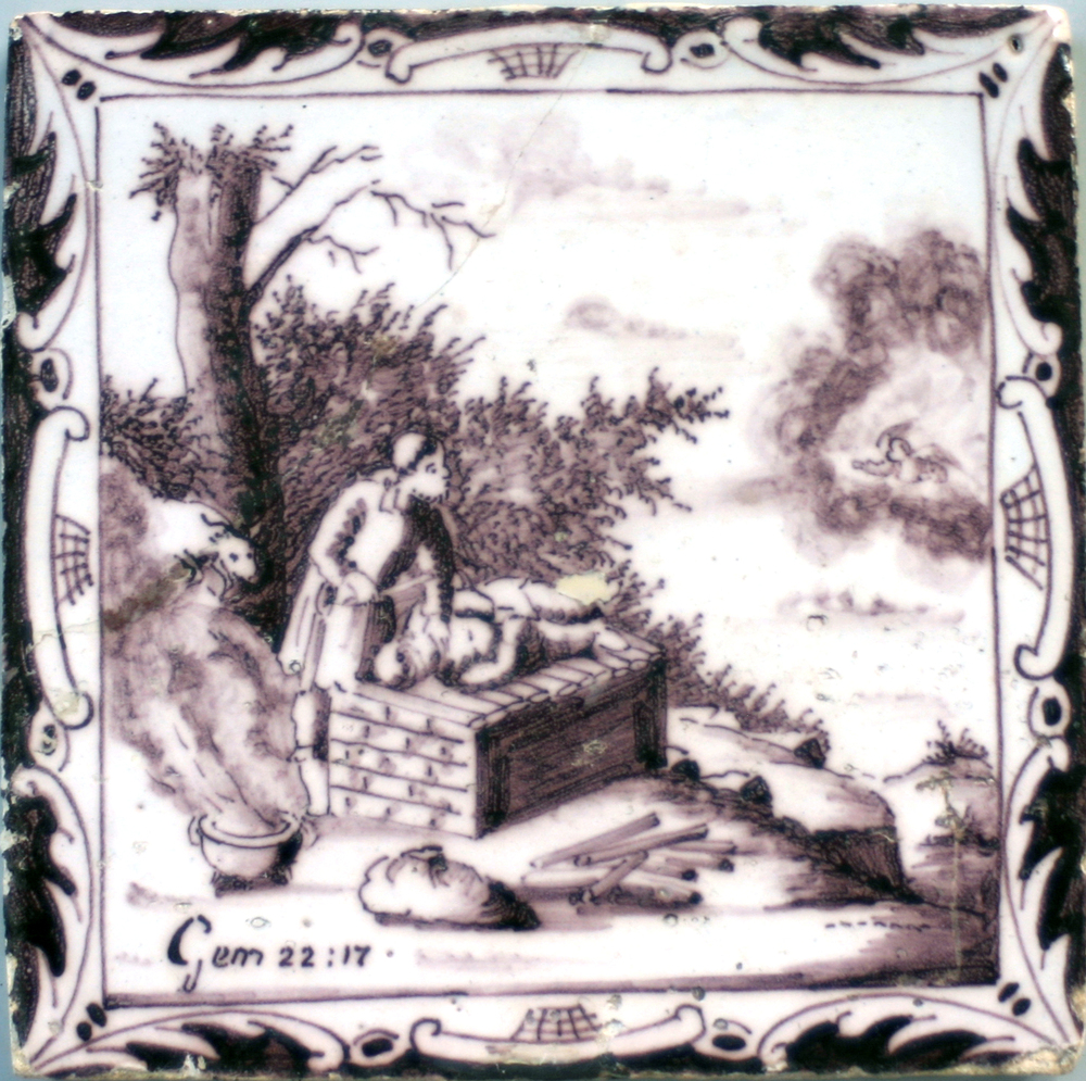 tegel van keramiek met tinglazuur, voorstellende: Ab...