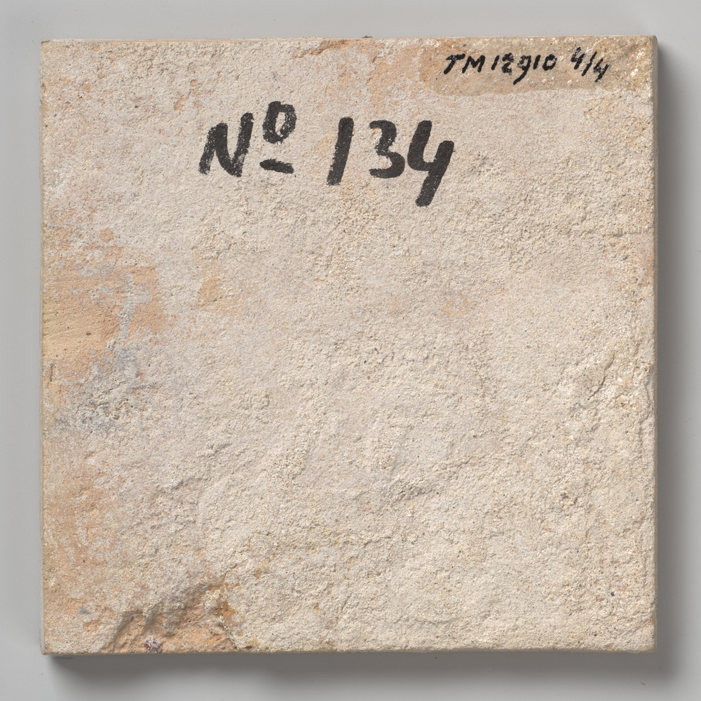 Tegel van keramiek met tinglazuur, voorstellende: de...