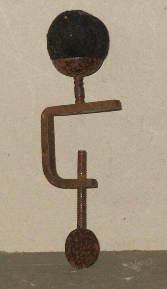 Speldenkussen met metalen beugel.