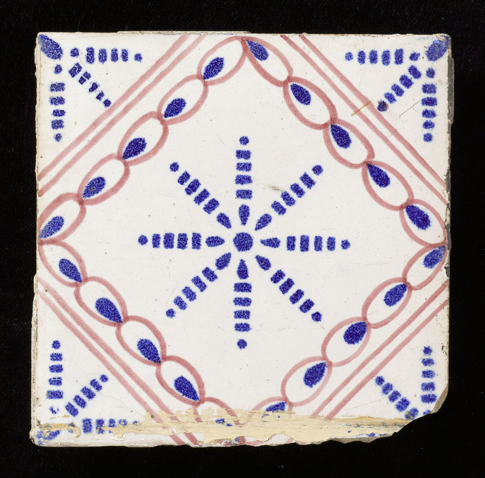 Tegel van keramiek in transferdruk en deels gesjablo...