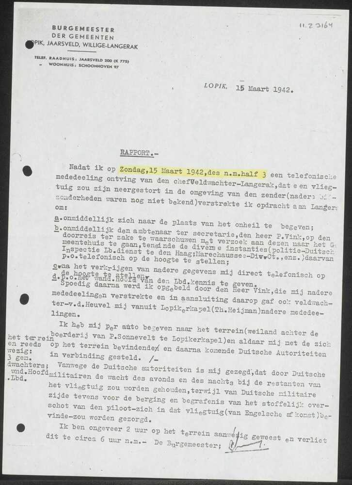 Proces-Verbaal burgemeester Lopik i.v.m. neerstorten...