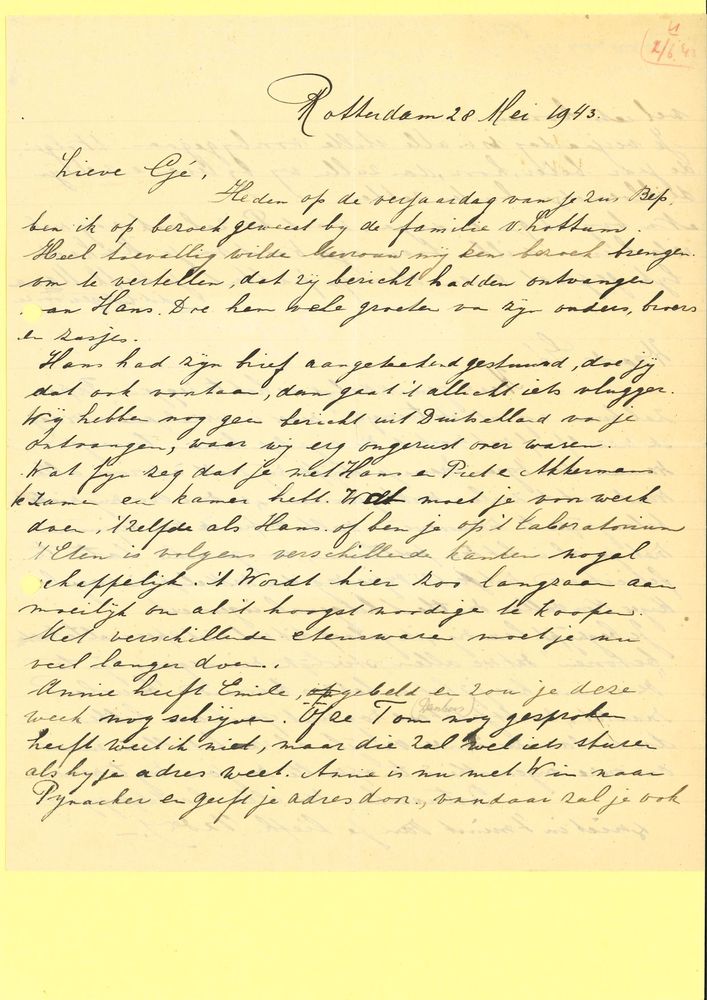 Brief van ouders naar Gé Verbeek, 29 mei 1943, Rotte...