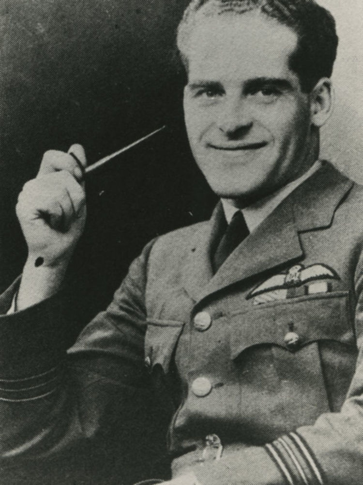 Foto van man in R.A.F. uniform. Tekst achterop: "via...