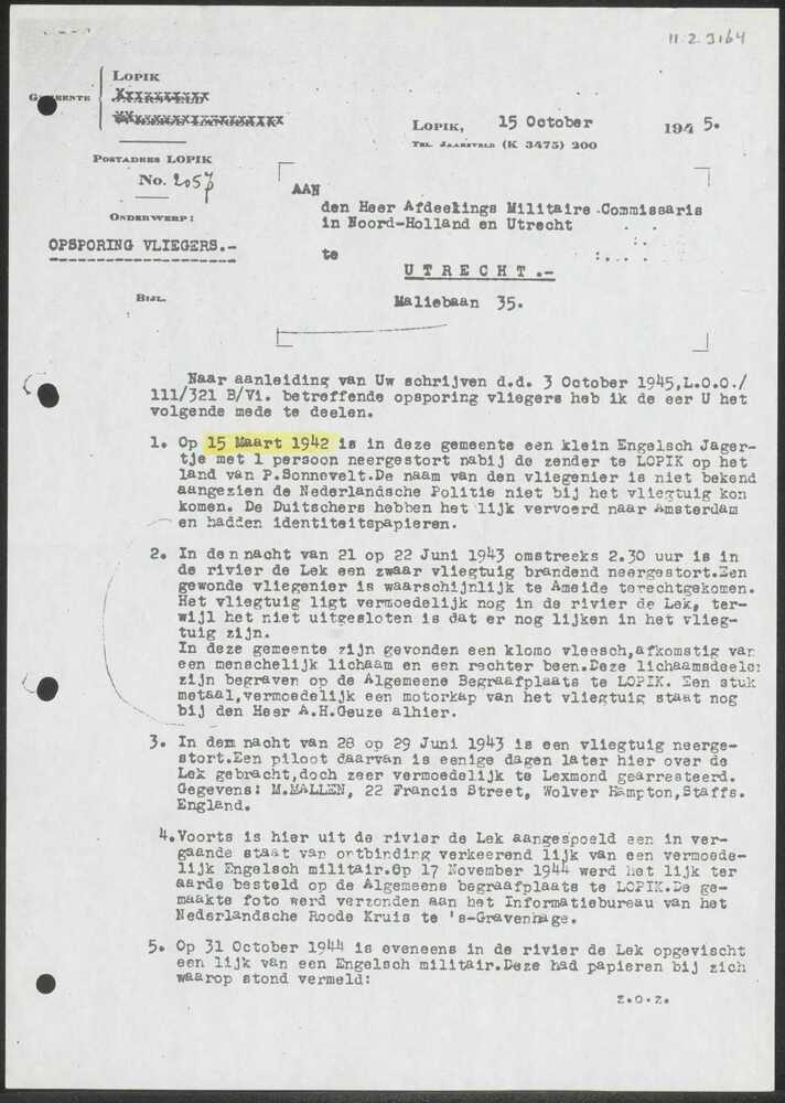 Proces-Verbaal burgemeester Lopik i.v.m. neerstorten...