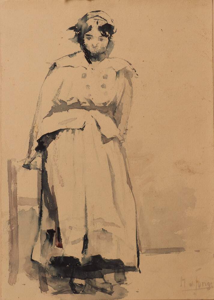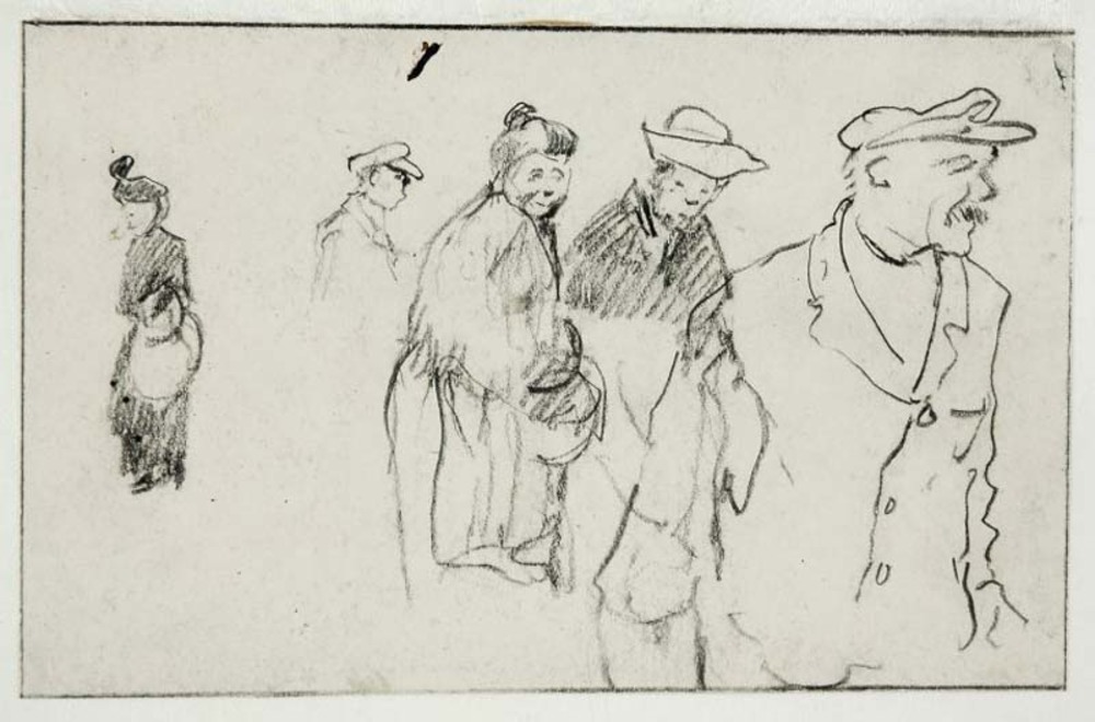 Figuurstudies van drie vrouwen en twee mannen op de ...