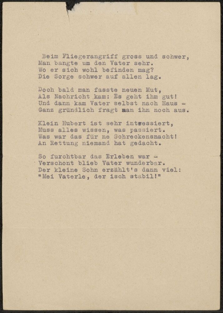 Gedicht van Hubert of Ella mogelijk 20-03-1944