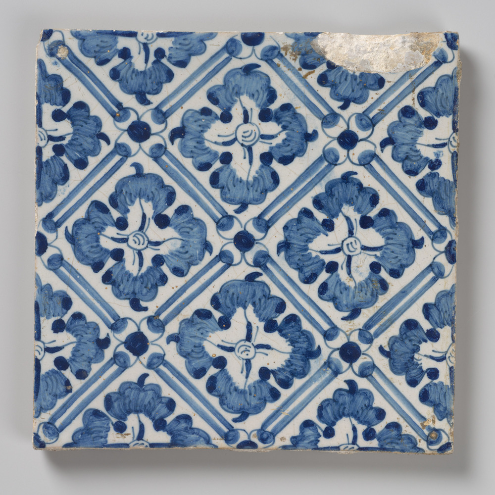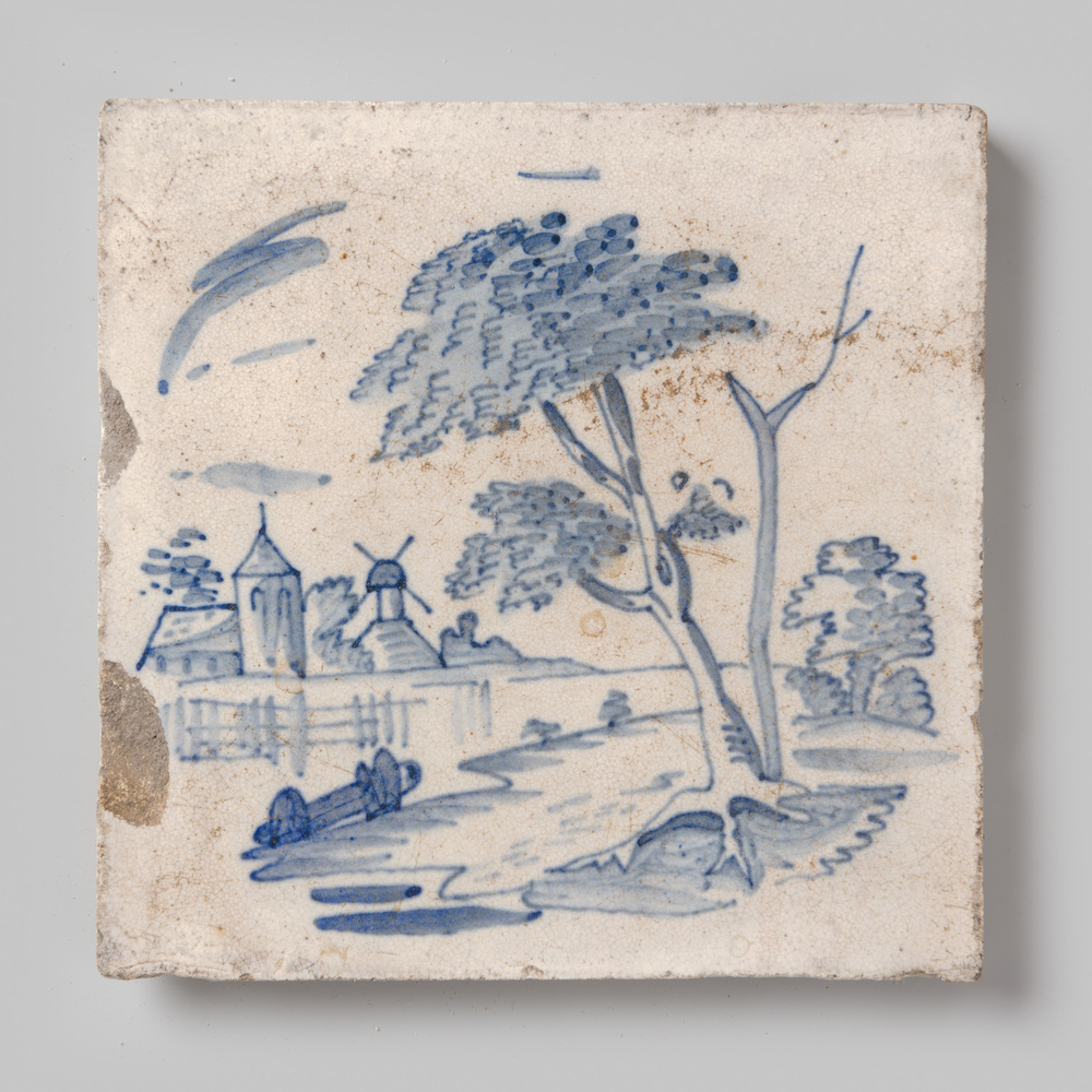 tegel van aardewerk met tinglazuur, voorstellende: h...