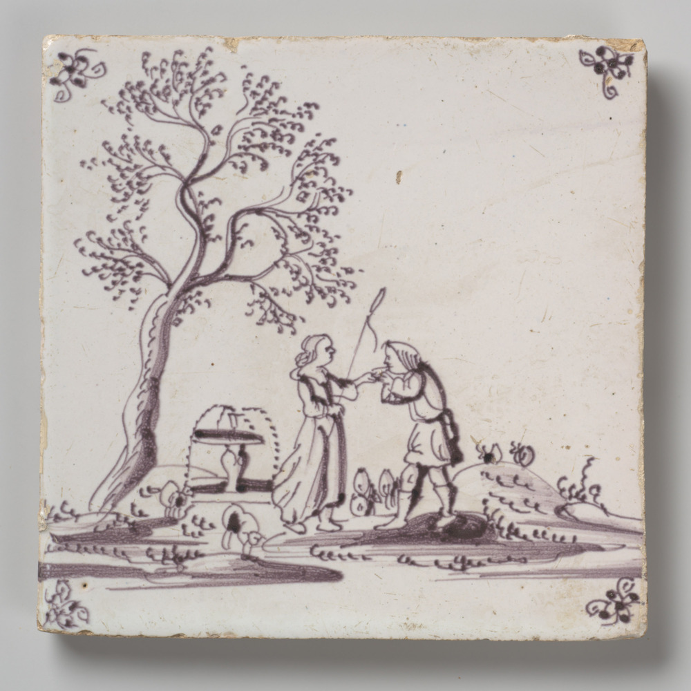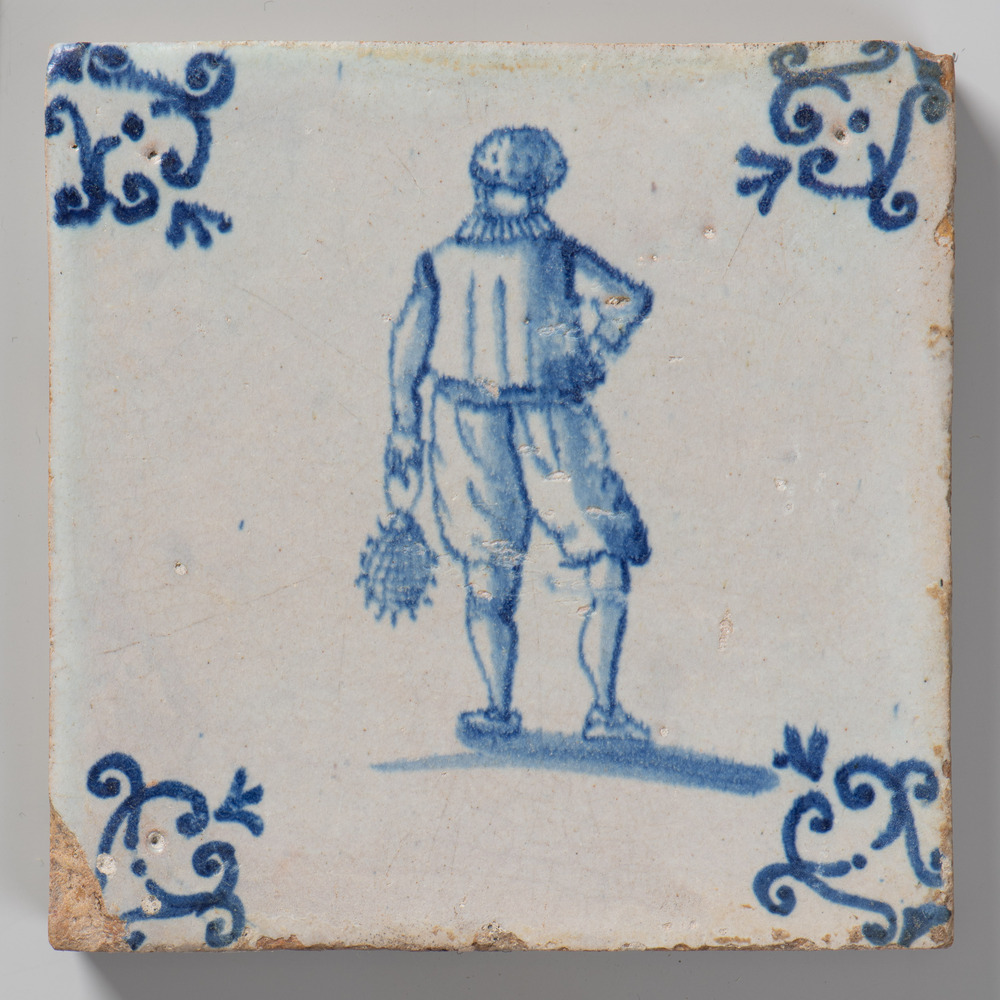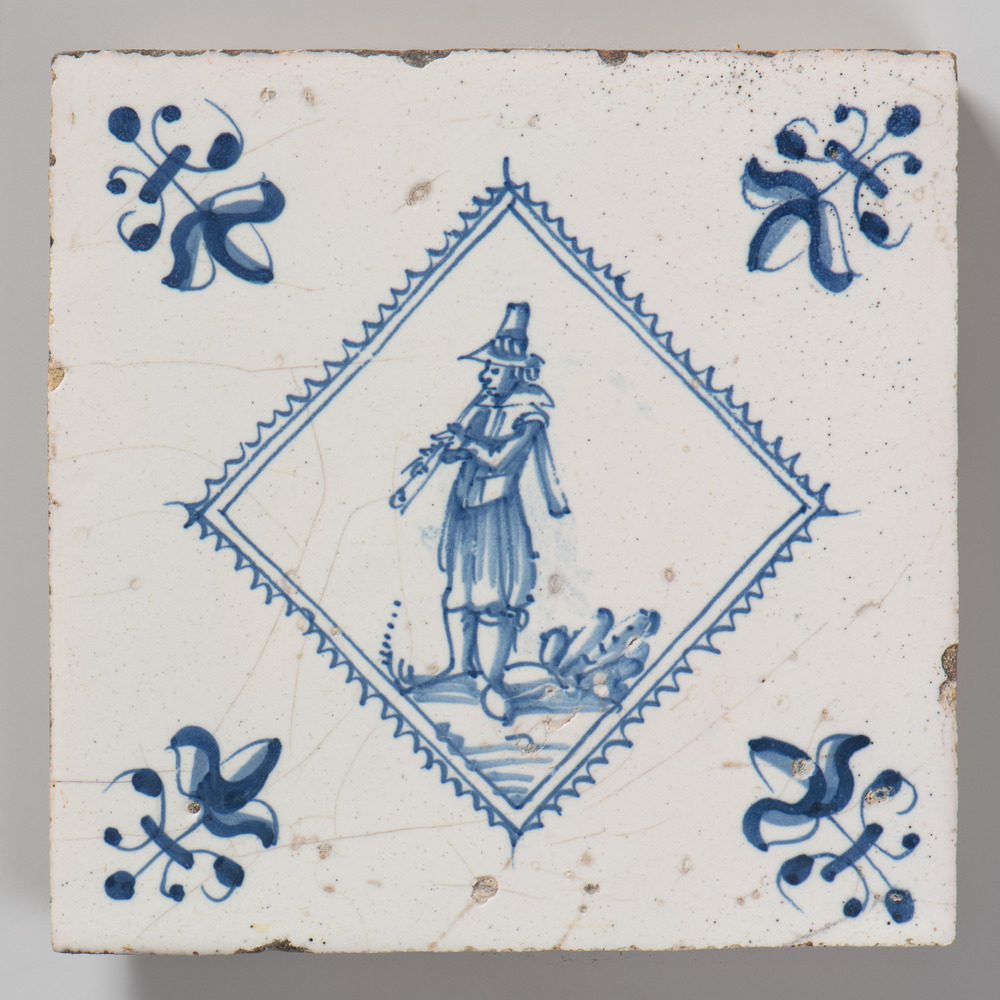 tegel van aardewerk met tinglazuur, voorstellende: m...