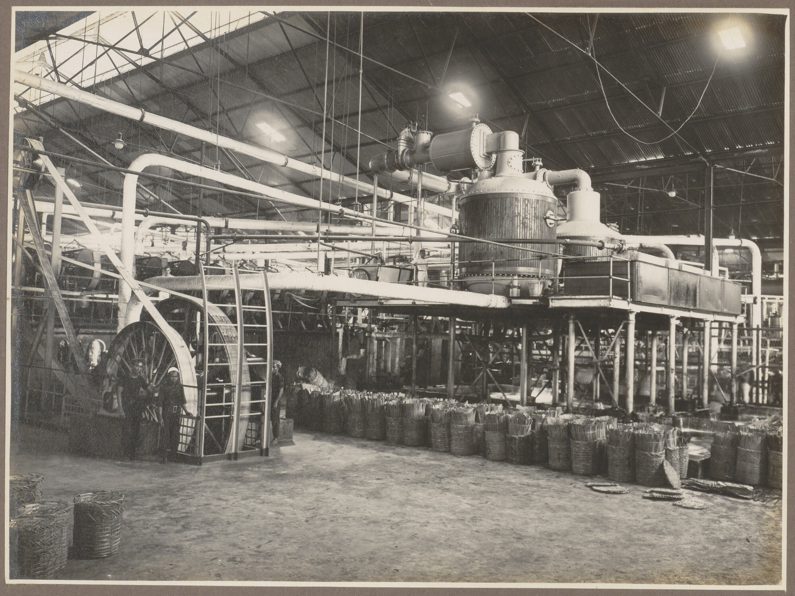 Binnenkant van een suikerfabriek bij Djatibarang en ...