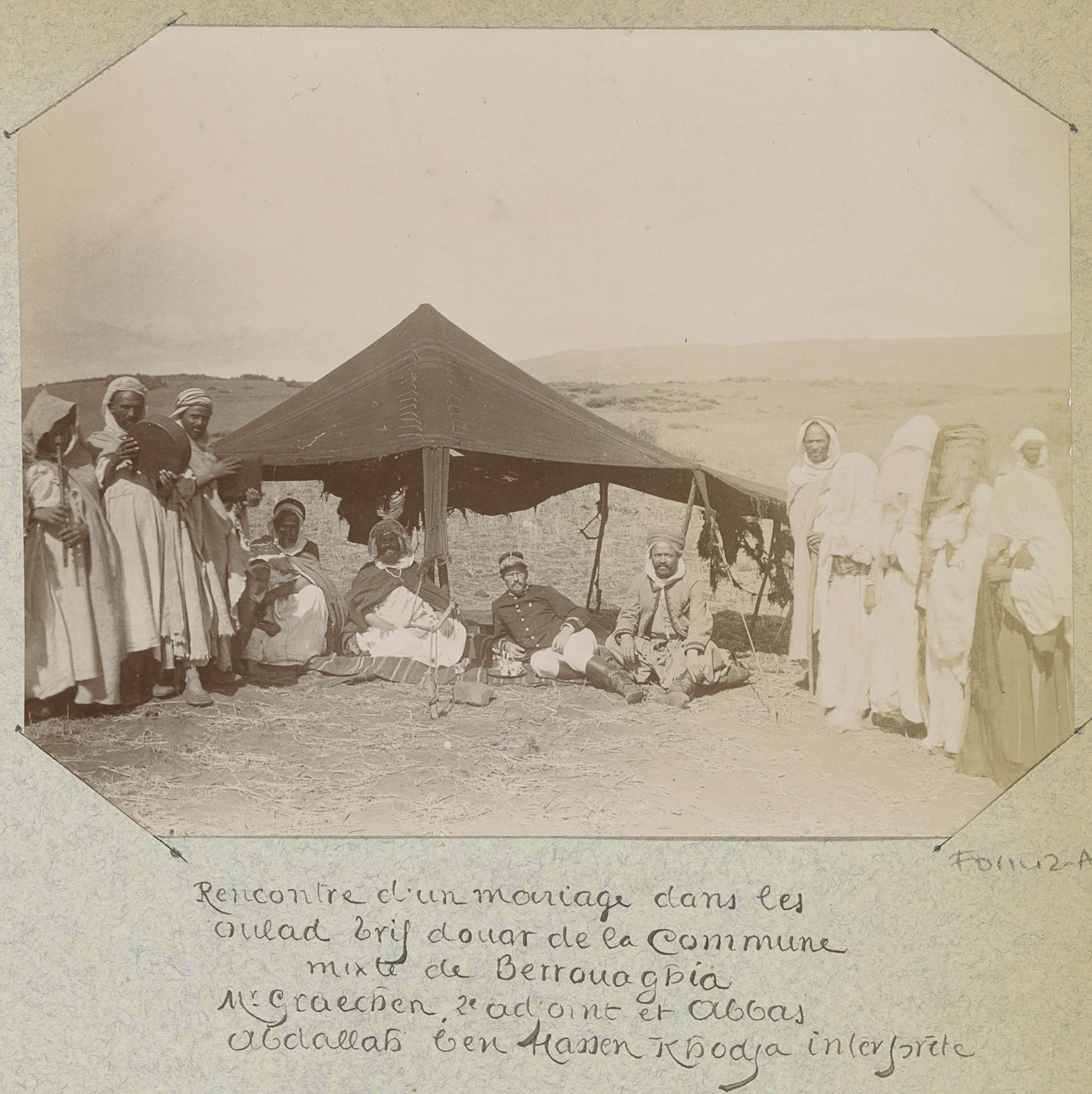 Gezelschap voor een tent ter gelegenheid van een huw...