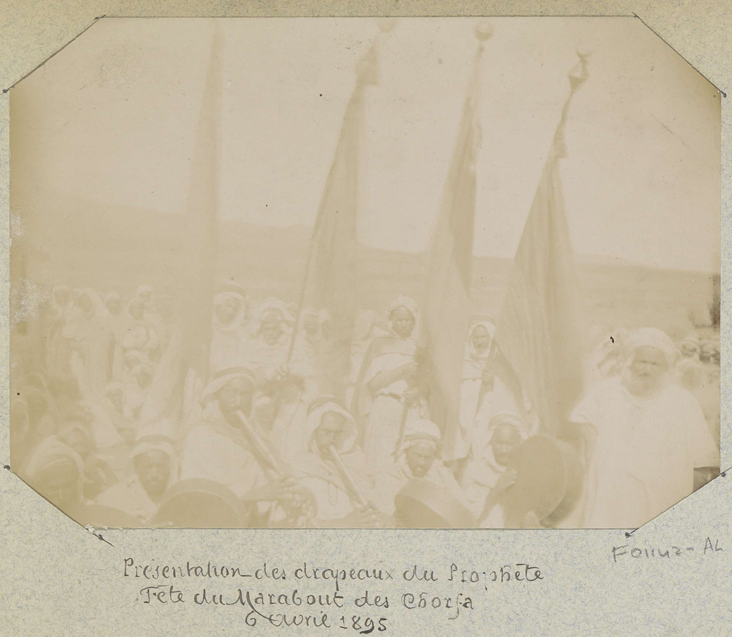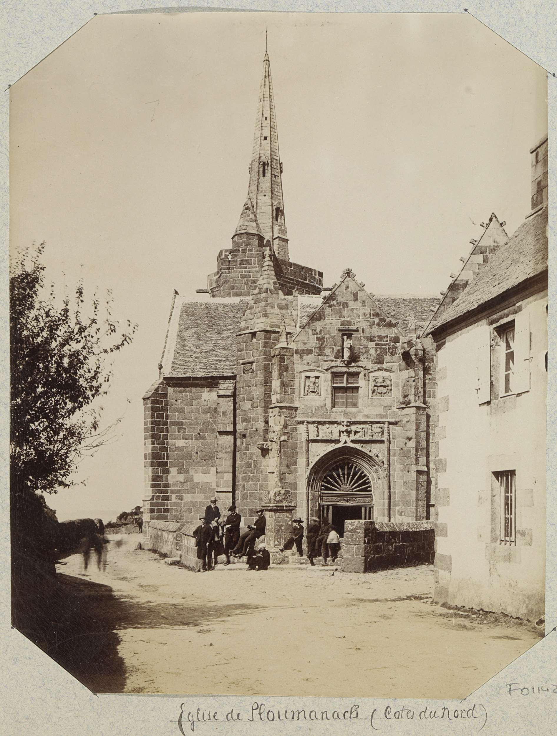 Groep mannen poserend voor de Kapel van de Notre-Dam...