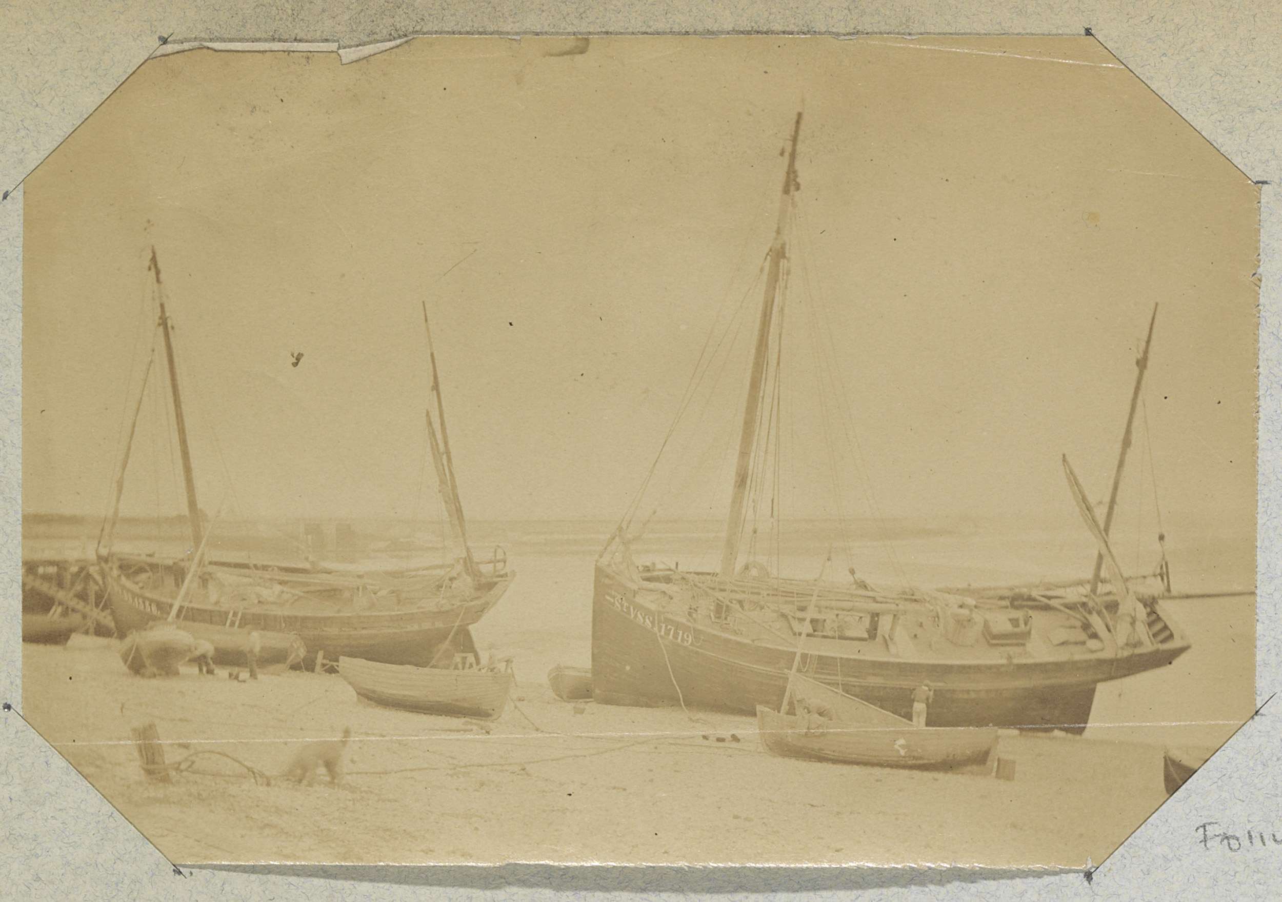 Schepen op het strand, vermoedelijk bij Saint Valery...