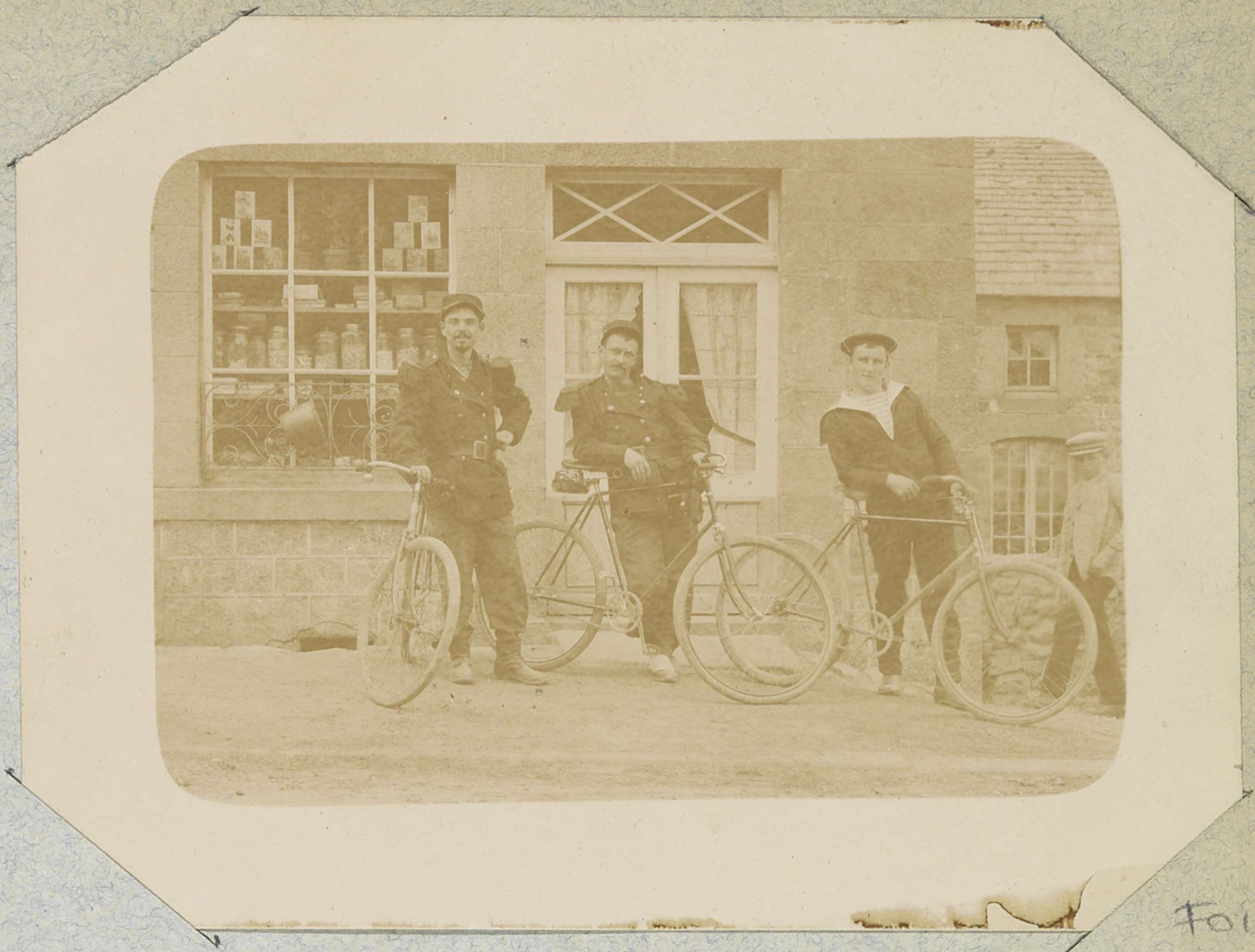 Groepsportret van oud-leerlingen op fietsen ('l'Asso...