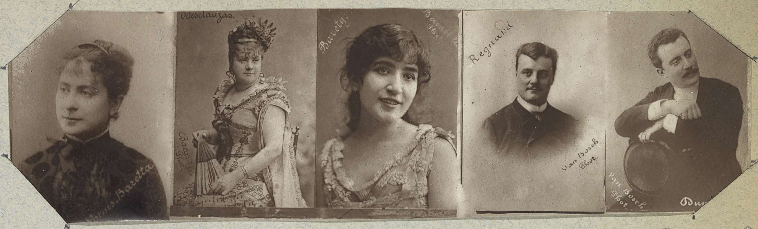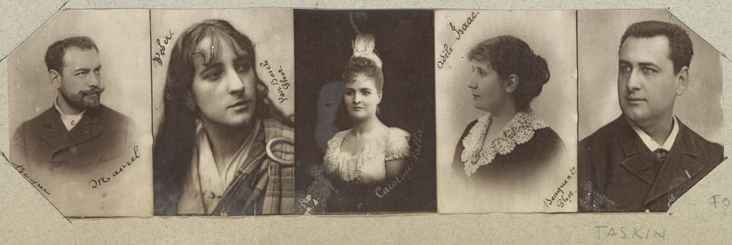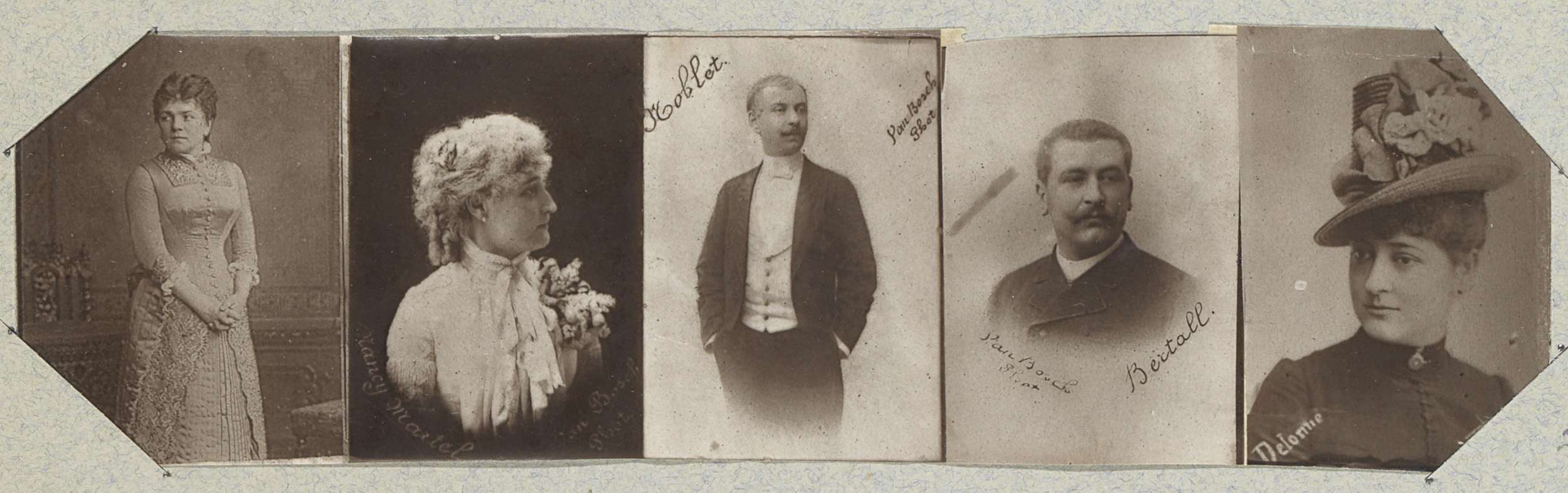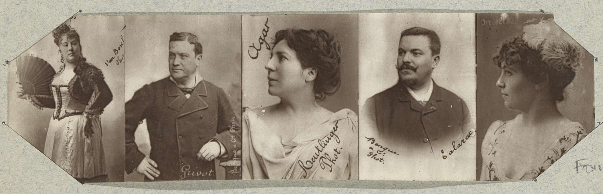 Vijf portretten van (vermoedelijk) zangers en acteur...