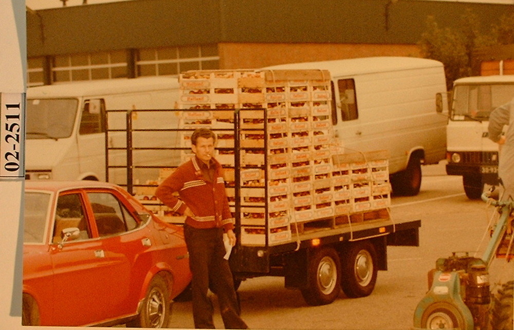 De heer G van Aalten (tuinder) op weg naar de veiling