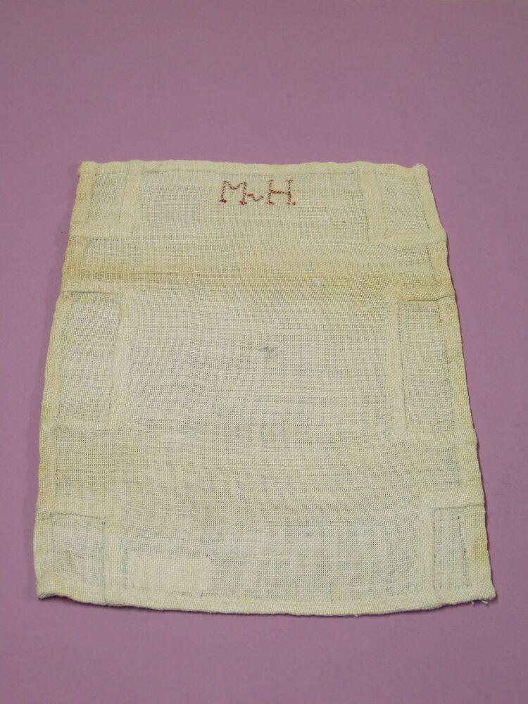 hoekenlap van borduurlinnen, genaaid door M. v. Hof ...
