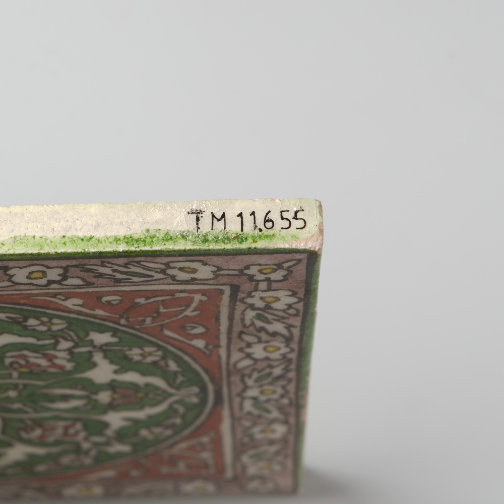 tegel van aardewerk, voorstellende een floraal (Perz...
