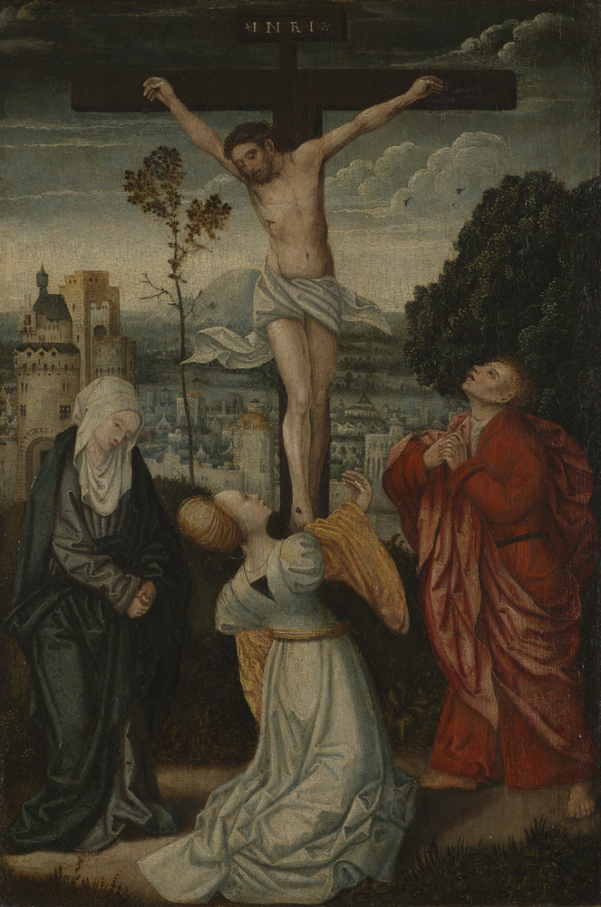 Kruisiging met Johannes, Maria en Magdalena aan de v...