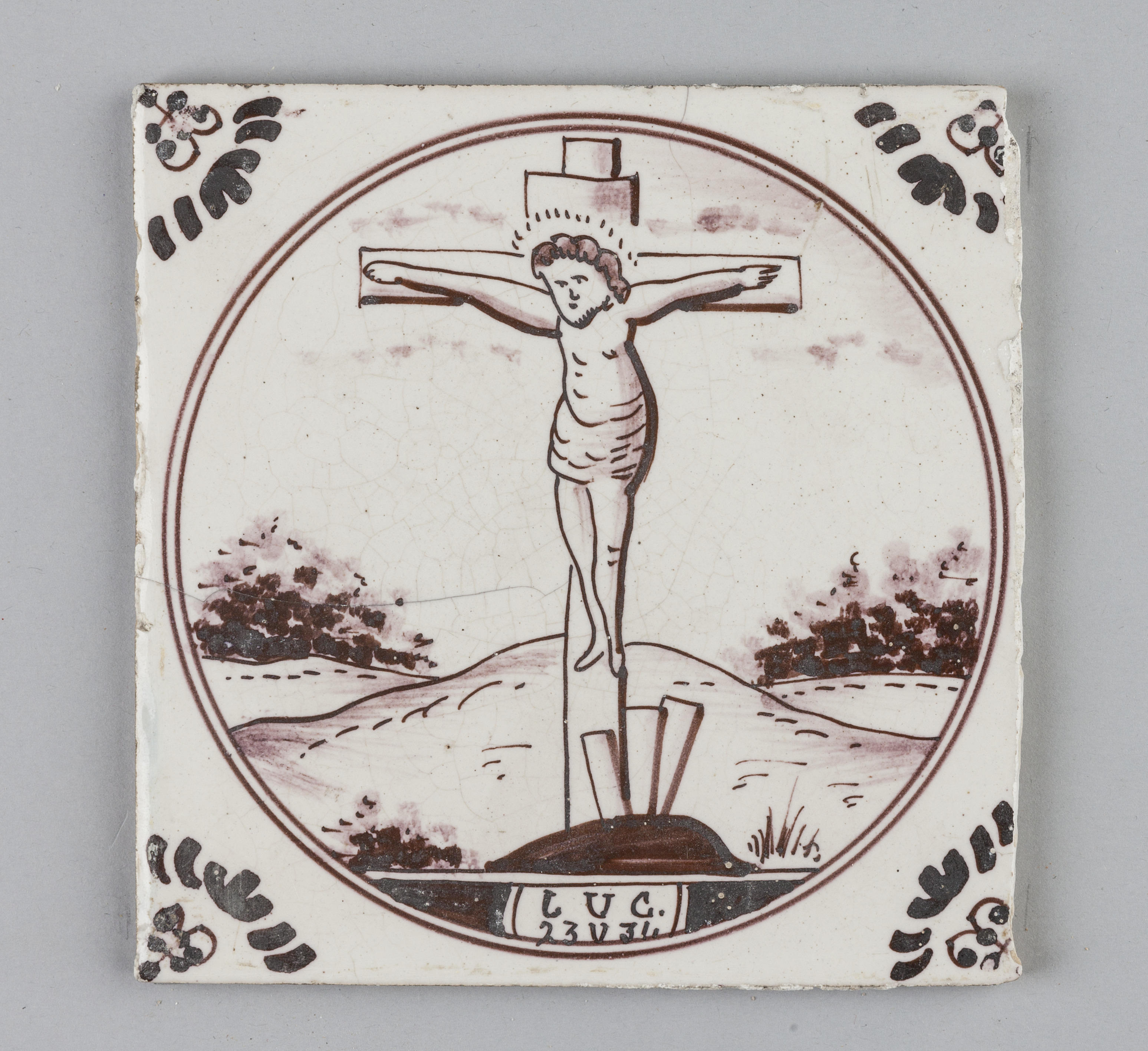 Tegeltableau met een afbeelding van 'De kruisiging v...