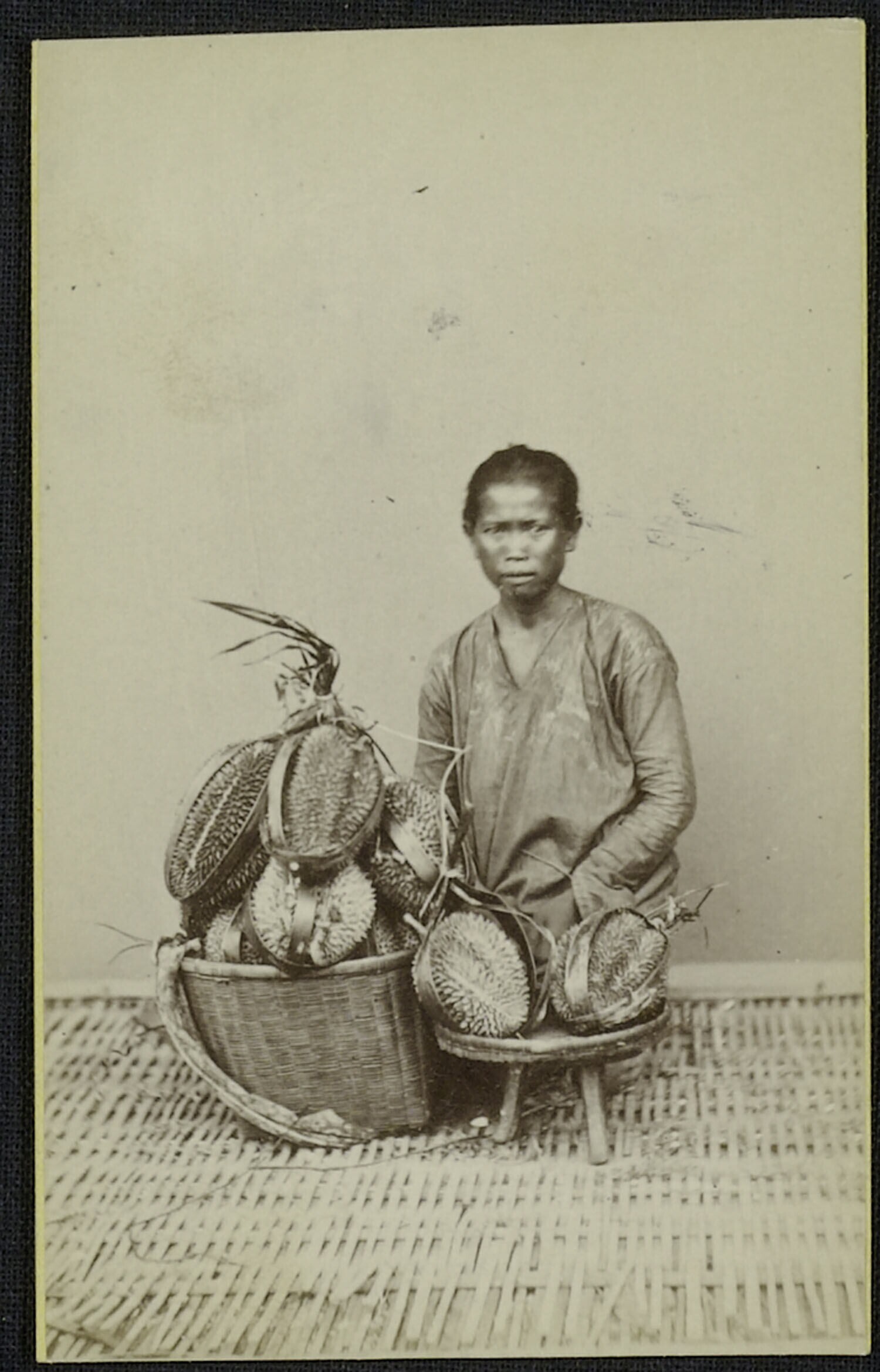 Javaanse doerianverkoper met zijn handelswaar