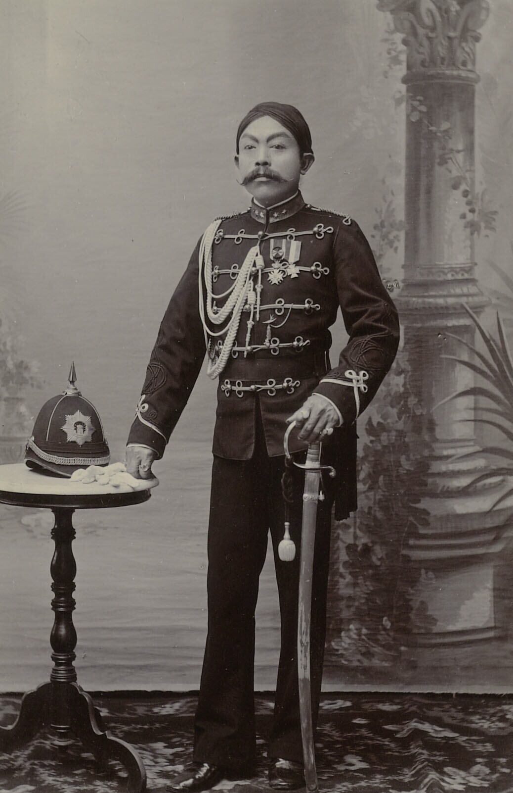 Portret van een staande Javaanse man van adel in uni...