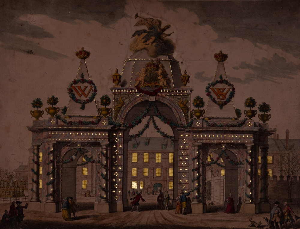 Tegel van keramiek met tinglazuur, voorstellende: De...
