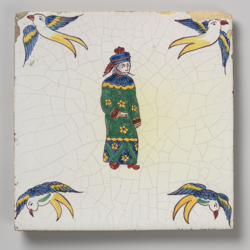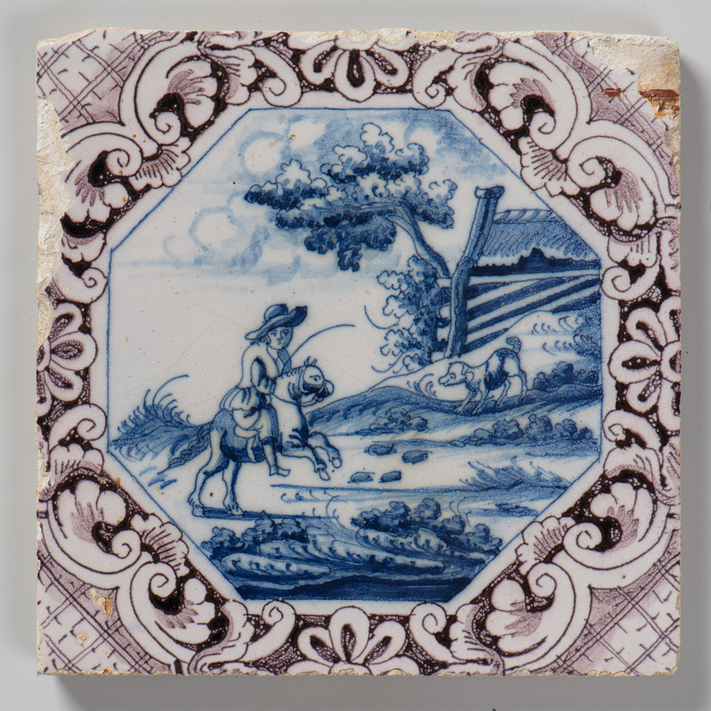 tegel van aardewerk met tinglazuur, voorstellende he...